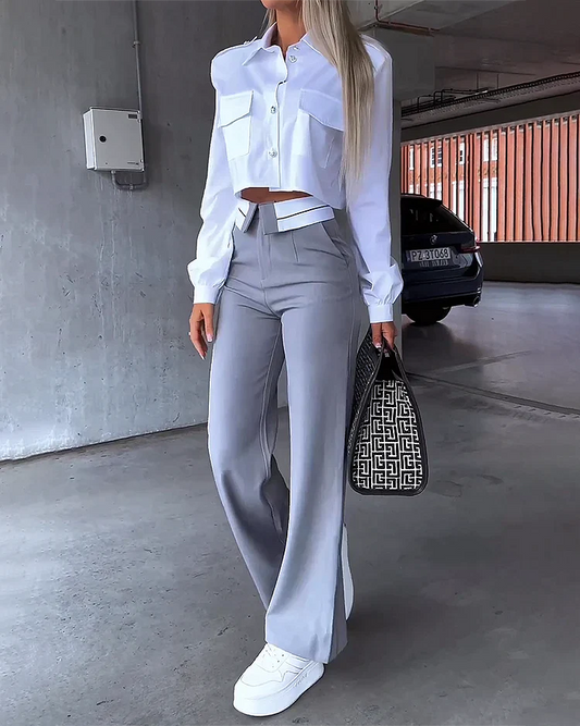 Todelt Dress med Bukse og Langermet Jakkeslagstopp