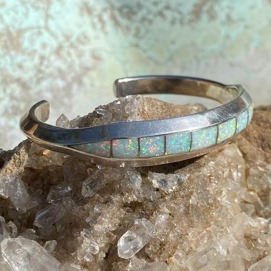 Navajo Opal Inlay Sterling sølv mansjett armbånd av Nathaniel Johnson