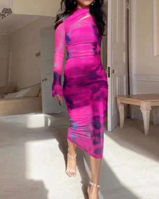 Tie-Dye Print Plissert Scoop Neck-Kjole