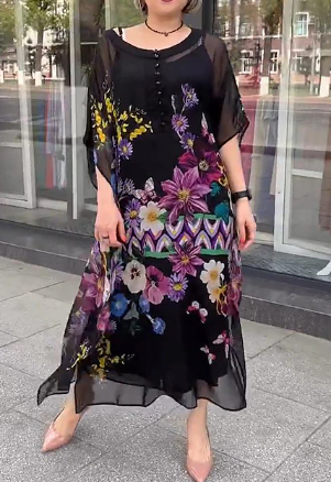Moderne kortermet midikjole med blomstertrykk