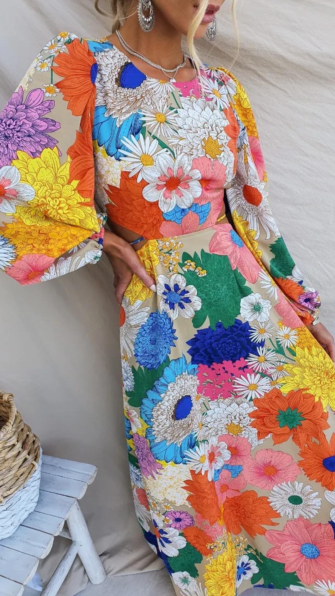 Åpen Rygg Og Elastiske Detaljer Blomstertrykk Maksikjole
