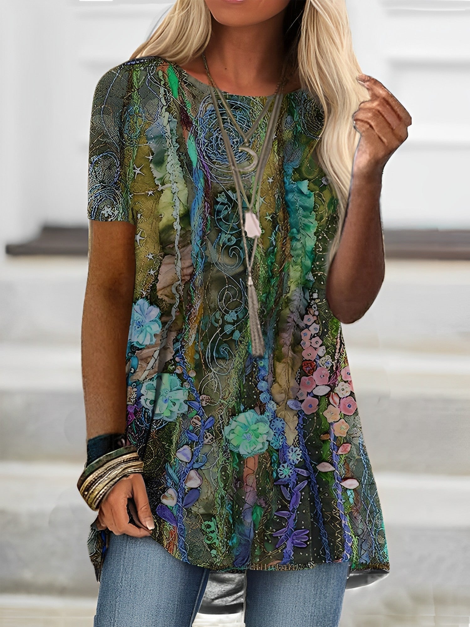 Bohemian Casual Print V-hals Wrap midje lang kjole