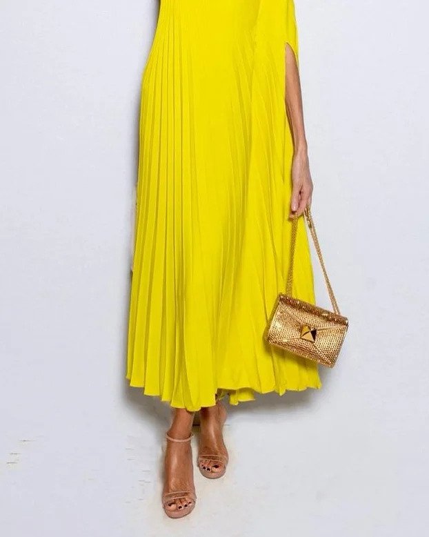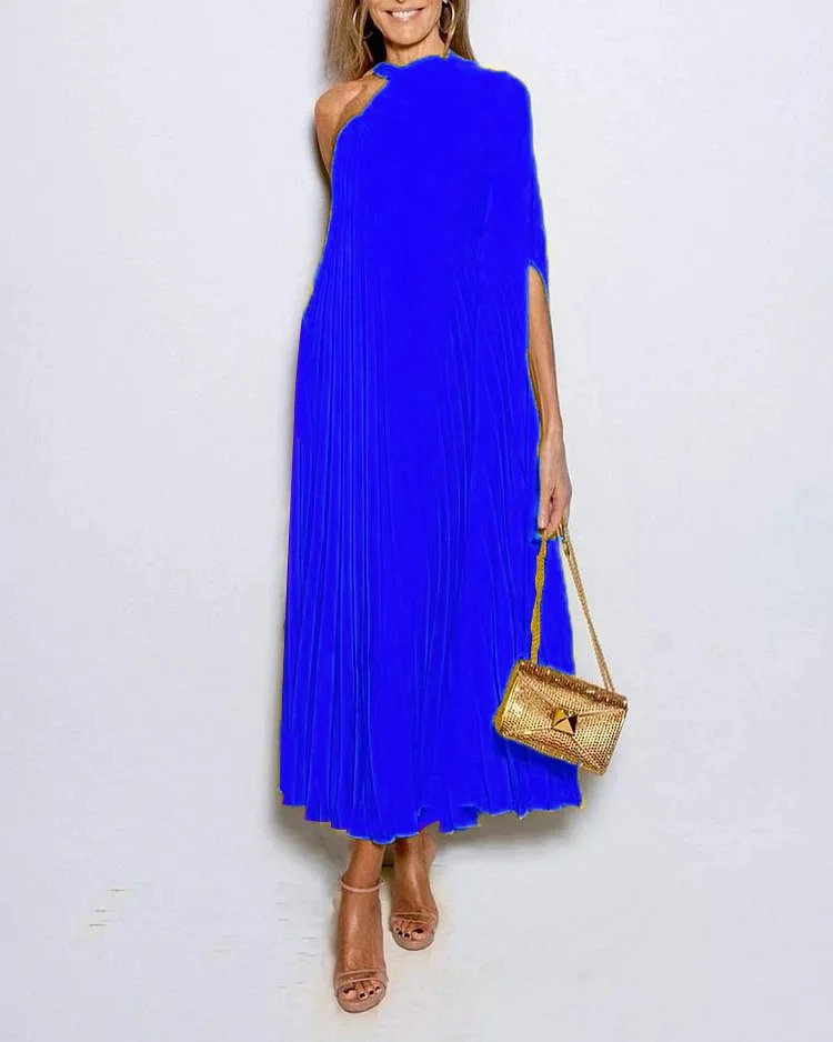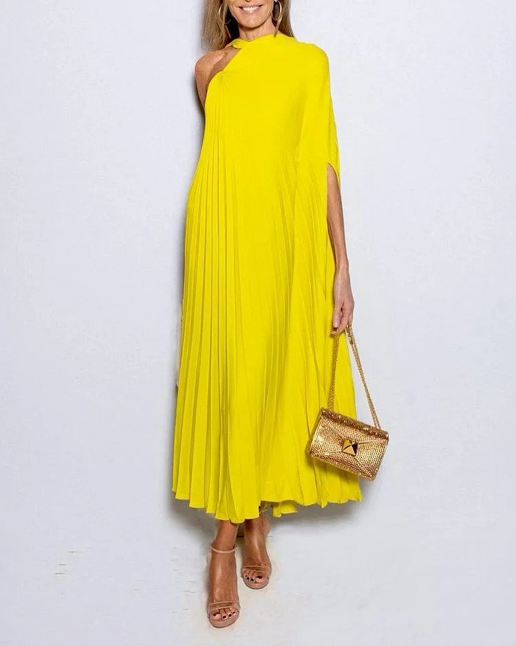 En Skulder Plissert Solid Kjole