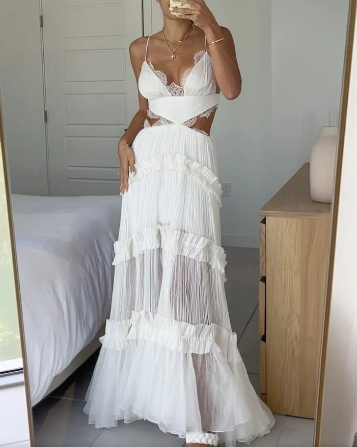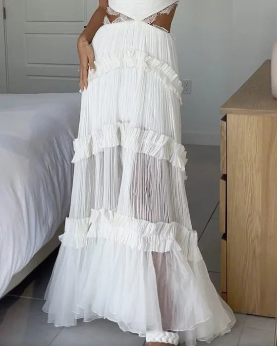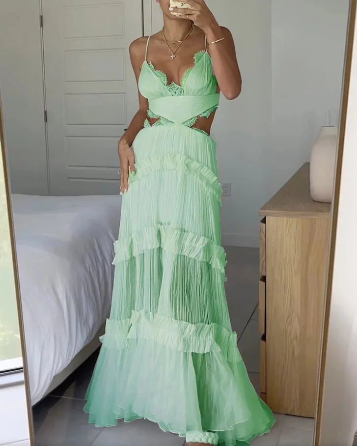 Ermeløs Plissert Lagdelt Utskjæring Ensfarget Kjole