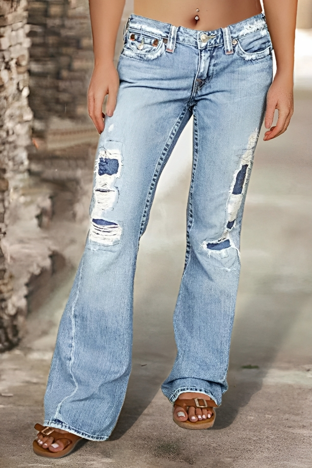 Flared Flap Pocket Back Low Rise Flare Jeans