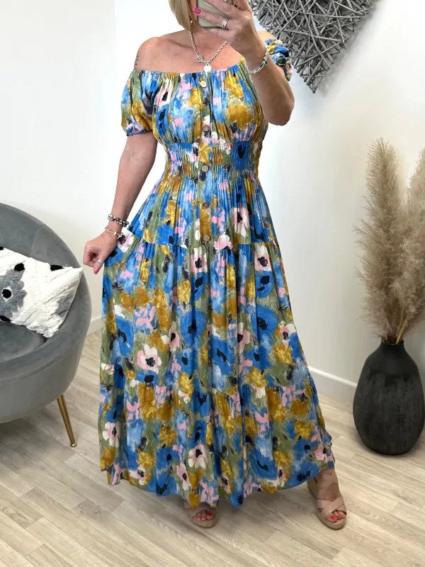 Bohemian Casual Print V-hals Wrap midje lang kjole