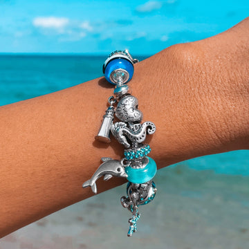 Elsker du delfiner? Beskytt dem med Sunset's Defend the Dolphins Charm Armbånd. Vårt unikt utformede sjarmarmbånd ble designet for å redde delfinene ved å øke bevisstheten og gi beskyttelse for delfiner over hele kloden. I tillegg hjelper hvert armbånd med å fjerne plast og rydde opp i havet vårt!