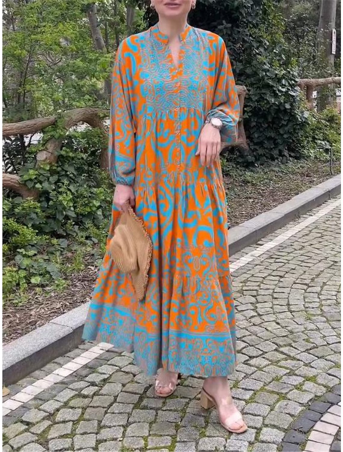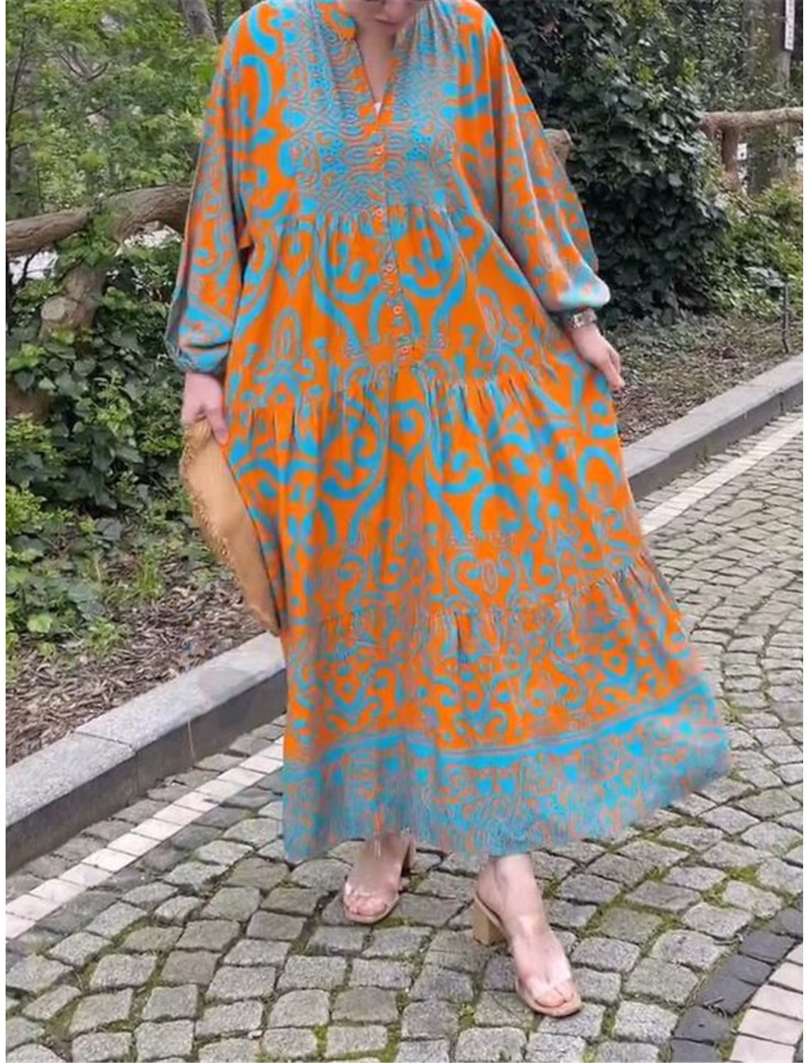 Bohemian Casual Print V-hals Wrap midje lang kjole