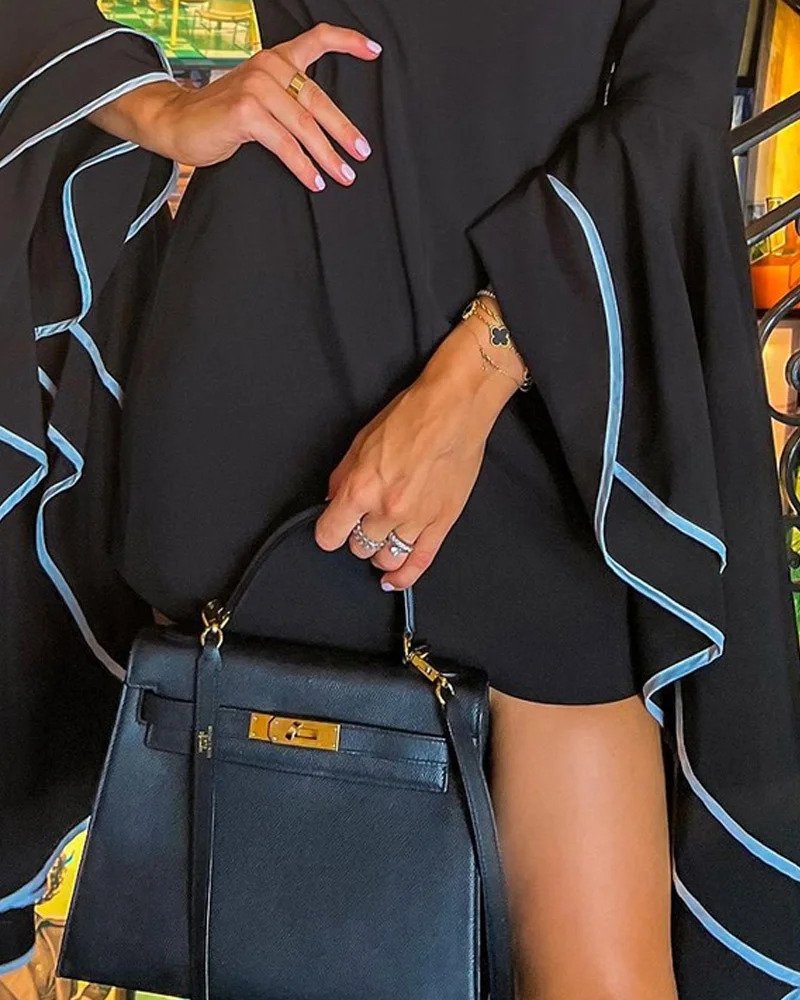 Kjole med Utsvingte Ermer og Ensfarget Flaggermus