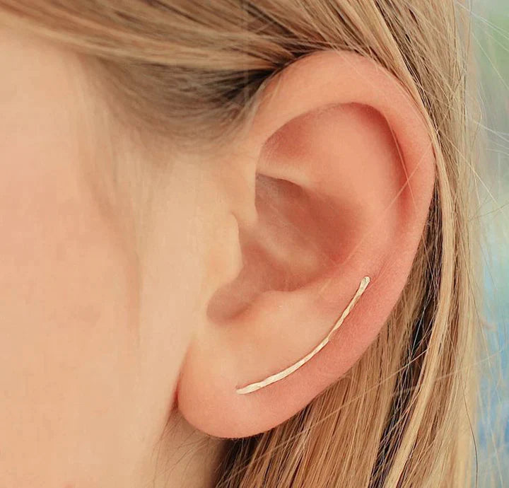 Fantastiske, minimalistiske klatreøredobber med en høyglanspolert finish som gir dem et elegant og moderne uttrykk. Enhver kvinne vil føle seg som en million dollar med dem, og det minimalistiske designet gjør dem ikke bare enkle å bære, men får dem også til å skinne lenge! Disse øreringene er det perfekte tillegget til ethvert antrekk eller til din personlige smykkesamling.