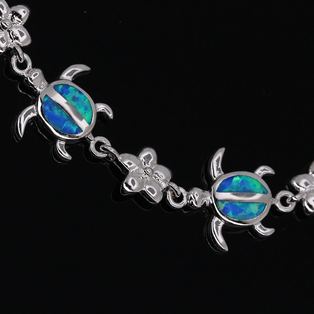 Vær sikker på at du har fått dem den perfekte gaven med Opal Sea Turtle Armbånd! Den vakre knallblå opalen komplimenterer det rene sølvet og skinner vakkert i solen. De bedårende havsjarmene passer godt til ethvert antrekk, noe som gjør det perfekt å ha på seg hver dag eller gi som gave med et garantert smil!