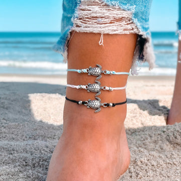 Leter du etter en behagelig sommerankel? Se ikke lenger enn Sea Turtle Surfer Anklet Set, disse lekre, morsomme delene er like søte som de ser ut. Disse anklene er perfekte for bestevenner! Bruk dem enten på strandpromenaden eller mens du tar en svømmetur i havet, disse søte havskilpaddene vil garantert vare livet ut!