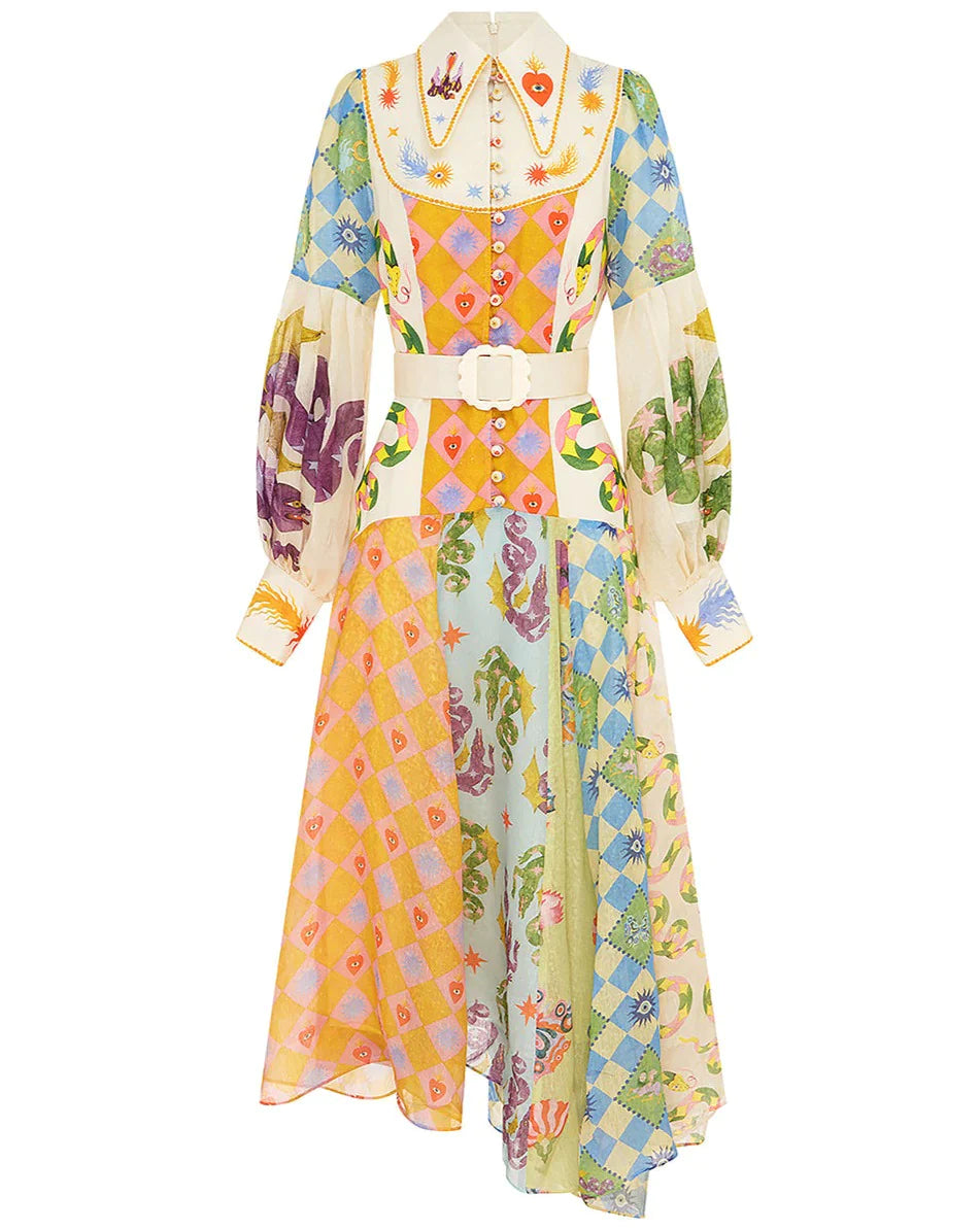 SKJORTEKJOLE MED BALLONGERMER I MULTI