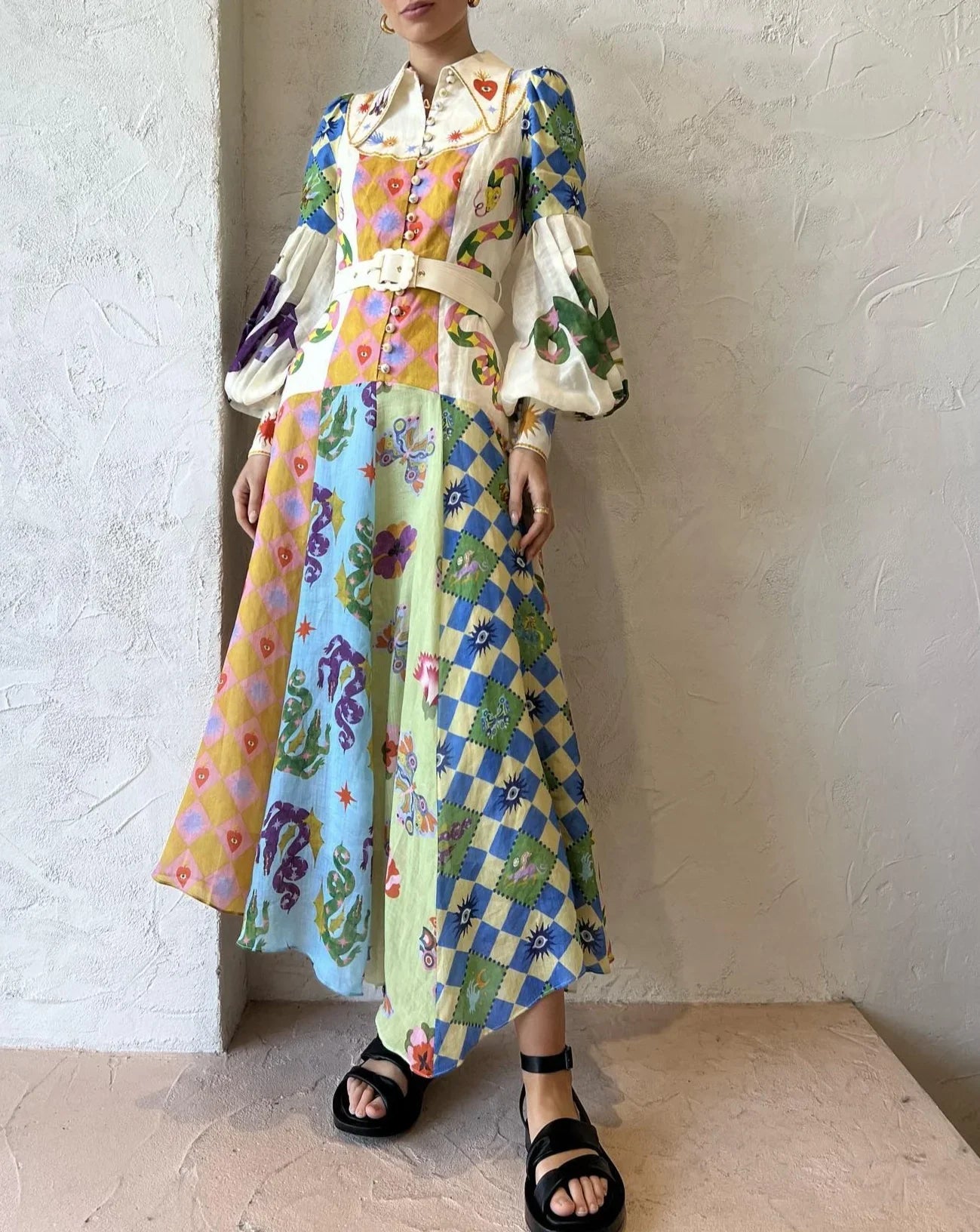 Bohemian Casual Print V-hals Wrap midje lang kjole