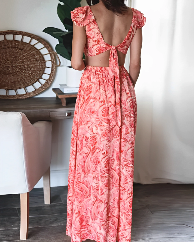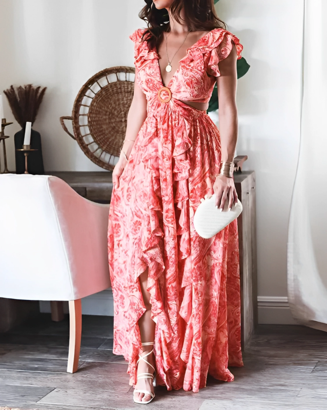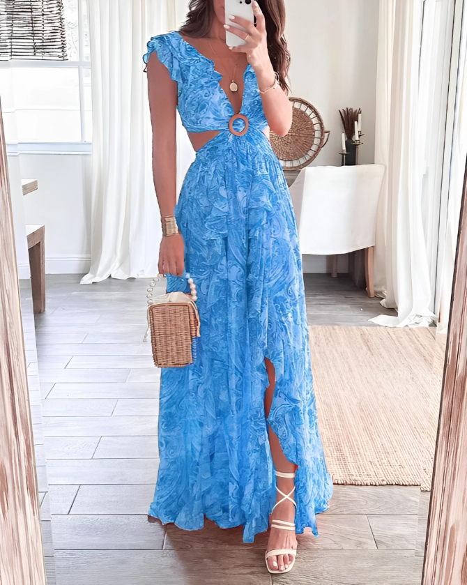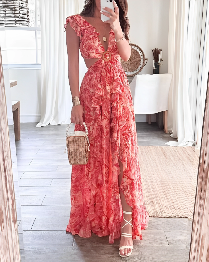 Bohemian Casual Print V-hals Wrap midje lang kjole