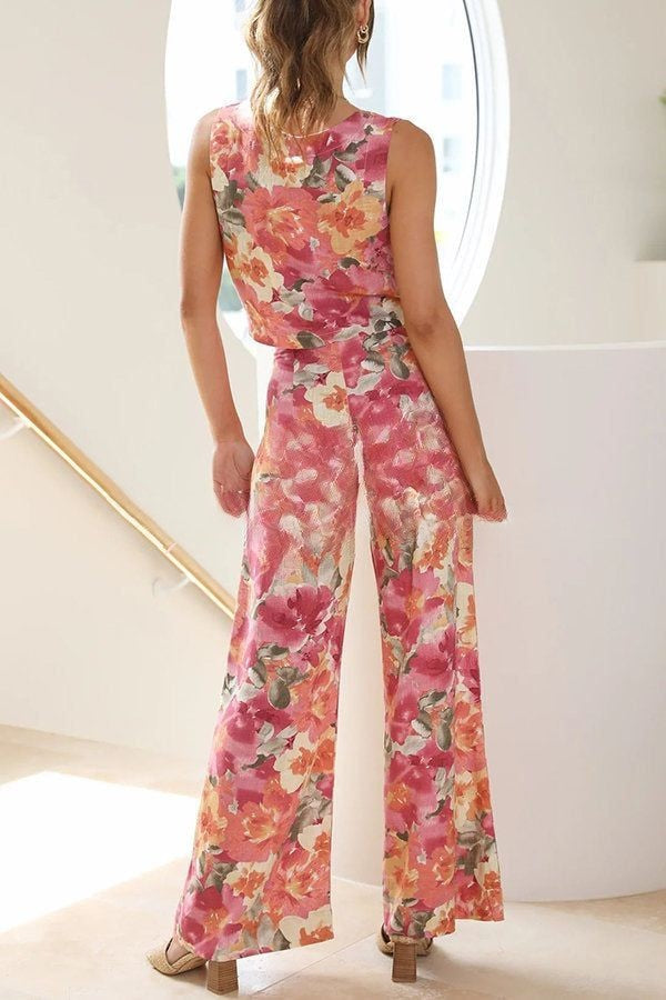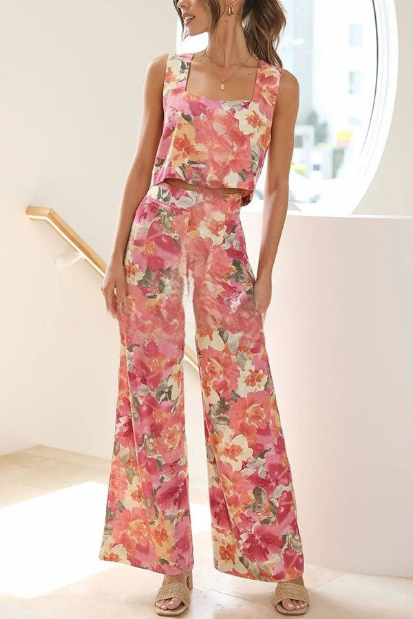 Truly Darling Floral Square Neck Tank og High Rise Wide Leg Pants Set