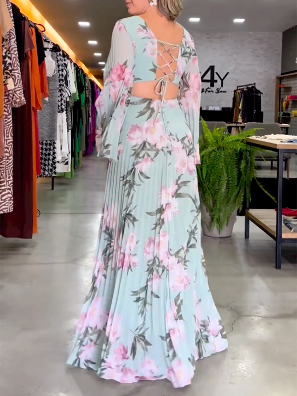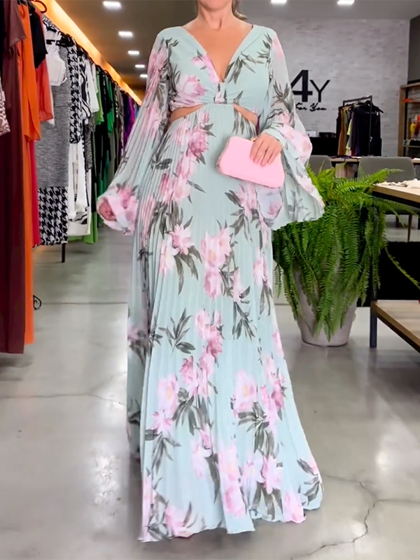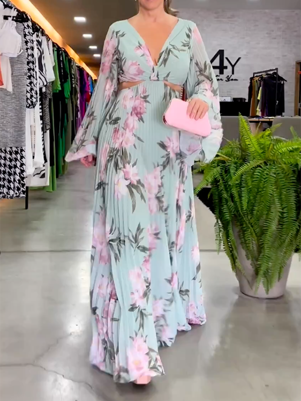 Bohemian Casual Print V-hals Wrap midje lang kjole