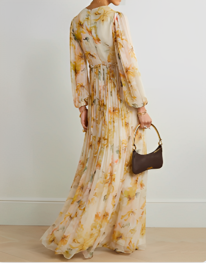 Bohemian Casual Print V-hals Wrap midje lang kjole