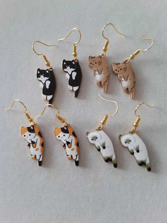 - Øreringene kommer i et fantastisk design med fem forskjellige katteraser.